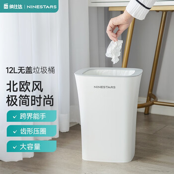 纳仕达家用无盖北欧风收纳桶简约客厅办公厨房卫生间厕所卫生时尚垃圾桶 极地白-12L-无盖 百搭场景