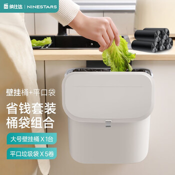 纳仕达厨房滑盖垃圾桶带盖橱柜门家用壁挂式厕所卫生间客厅悬挂收纳纸篓 白色BGT-9-2【大号】+黑色垃圾袋/150只