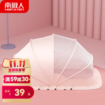 南极人(Nanjiren)婴儿童蚊帐罩新生宝宝床防蚊全罩便携式可折叠遮阳蒙古包 粉色