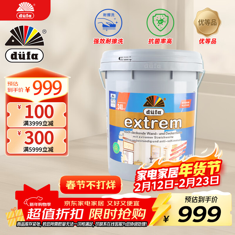 都芳(DUFA)晶典乳胶漆油漆涂料水性环保墙漆德国进口内墙面漆15L套装