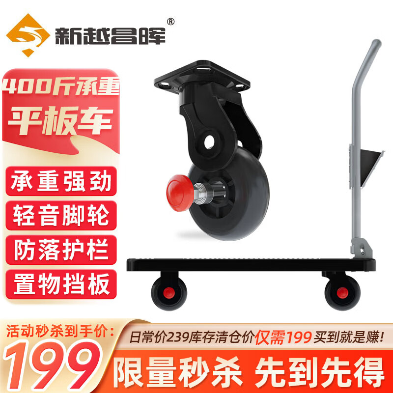 新越昌晖小推车拉货平板车折叠手推车拖车手拉车73x47cm承重400斤