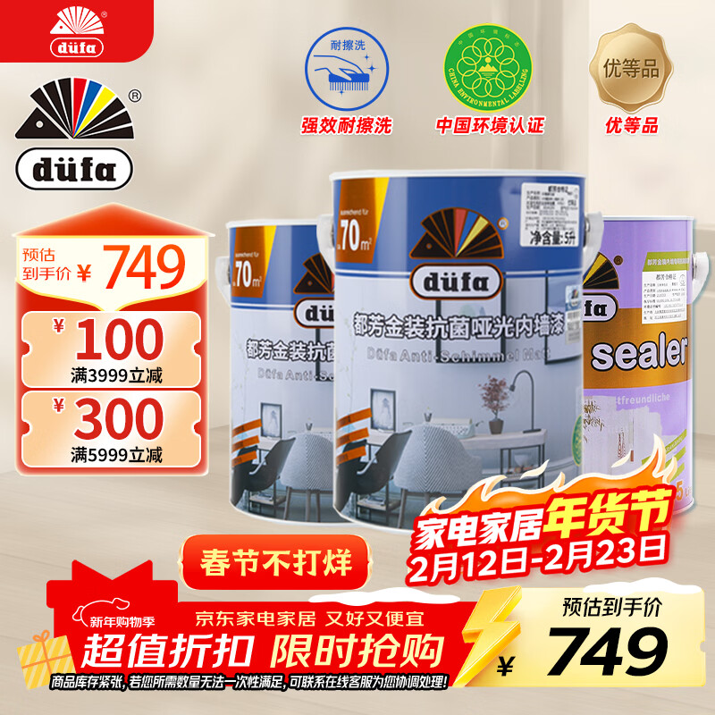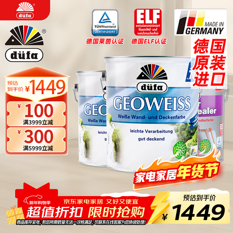 都芳(DUFA)都芳漆吉欧乳胶漆油漆水性环保德国进口墙漆厂送定制品15L套装