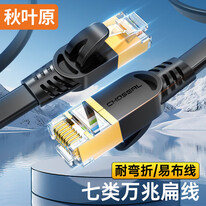 秋叶原 七类屏蔽网线带镀金水晶头 工程级万兆网络连接线 电脑宽带家用扁平成品跳线 1米 黑色 QS5178A