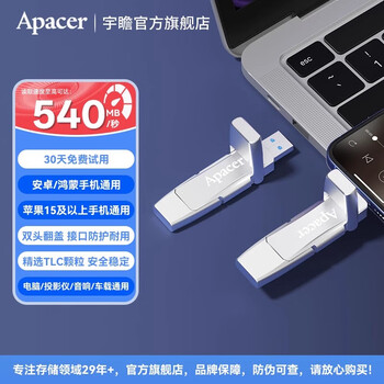 宇瞻(Apacer)AS901 移动固态U盘 大容量 读速高达1050M Type-C 双接口 手机电脑两用 移动优盘 【512GB】AS901固态U盘+定制刻字/送皮套