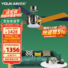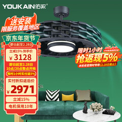 YOUKAIN 变频吊扇灯餐厅咖啡馆风扇灯客厅电扇灯创意后现代吊灯扇YJ358 48寸6叶彩色 变频6档 24W三色LED