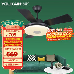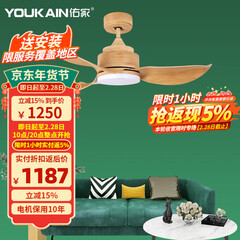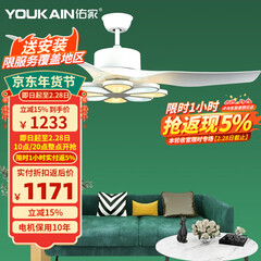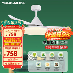 佑家(YOUKAIN)客厅吊扇灯高亮照明现代简约风扇灯52寸变频大风量LED电扇灯 52寸哑光白 70W三色LED 配变频遥控 六档调速 遥控正反转