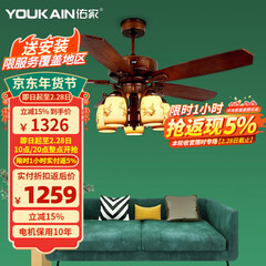 佑家(YOUKAIN)中式吊扇灯客厅中国风桐木风扇灯创意吊灯风扇YJ232