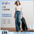 三彩2026春季新款休闲牛仔裤中腰宽松阔腿裤长裤通勤Z 海军蓝 L 165/72A