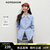 红袖100%棉收腰蓝色衬衫2025春季新款女装高级感撞色条纹两穿翻领上衣 蓝条725 M