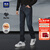 海澜之家(HLA)牛仔裤男皮标点缀直筒裤五袋款裤子男秋季新复古回潮 牛仔蓝过渡色(中)4F XL 180/88A