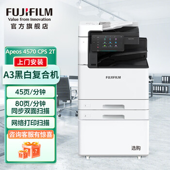 富士胶片( FUJIFILM) Apeos 4570 CPS 2Tray A3黑白多功能复合机 含输稿器+双纸盒 安装售后 45速