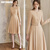 ROEYSHOUSE罗衣小香风连衣裙秋冬新款气质系带收腰粗花呢中长裙09601 卡其色 M