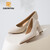 日泰(RITAI)高跟鞋女通勤百搭单鞋女夏季新款简约气质职业粗跟尖头女士工作鞋 米色 36 (230mm)