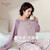 康妮雅(Conlia)睡衣女秋冬新款三层夹丝棉保暖纯色女士家居服休闲可外穿套装 莓红 XL