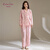 康妮雅睡衣女秋季长袖长裤开衫家居服套装薄绒可外穿 浅粉 M