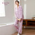 康妮雅(Conlia)睡衣男女款冬季纯棉秋冬空气棉夹丝夹棉套装开衫家居服秋冬情侣款 蓟粉红(女款) XL