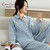 康妮雅(Conlia)睡衣女春秋季纯棉双层纱女士家居服长袖经典格子休闲套装可外穿 蓝白格(春秋薄款) XL