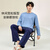 康妮雅男士纯棉长袖长裤简约纯色睡衣家居服套装圆领秋季睡服宽松 蓝色 2XL