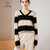 帕什 羊绒衫女100%山羊绒秋冬V领单纱宽松条纹针织毛衣 TY-3134 青绒+黑 均码