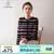 帕什羊绒衫女开衫25秋冬新款圆领加厚条纹针织毛衣外套MC-2539 黑色 M