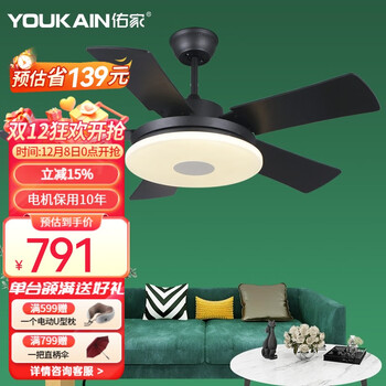 佑家LED餐厅风扇灯吊扇灯现代简约客厅吊灯风扇卧室电扇灯 哑光白 配壁控(两火一零) 48寸