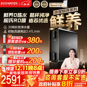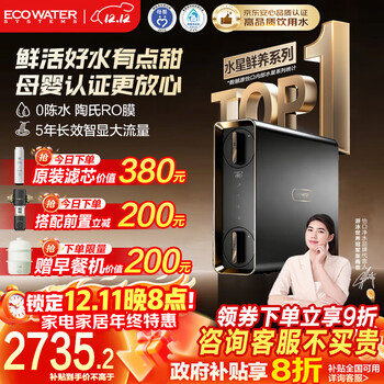 怡口(ECOWATER)净水器家用水星Pro1000G鲜养0陈水ERO185-2净水机厨下式净饮机陶氏RO反渗透直饮机 母婴认证1000G
