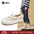 快乐玛丽(J&M)乐福鞋女士单鞋2026春季新款平底休闲鞋百搭懒人一脚蹬运动帆布鞋 米色 38 240mm