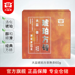 大益茶叶 普洱砖茶熟茶 琥珀方砖(2201批)自饮口粮茶 单片装60g*1片