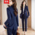 简蜓职业装套装女工作服外套春秋新款高级西装酒店经理大学生面试正装 藏青色西装+裤子 XL 【107-117斤左右】