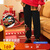 安踏儿童裤子男大小童2026春加绒新年款拜年服针织长裤A52618743